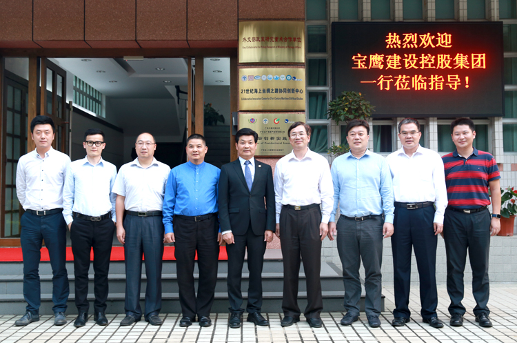 10月15日,宝鹰集团董事局主席古少明、董事副总裁古朴、总裁助理吴义课、文化品牌部总经理董宾一行应邀赴广东外语外贸大学考察并洽谈校企合作事宜。
