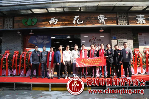 2018年1月17日早上,潮青商会组团参加公益餐厅蛇口雨花斋开业仪式,商会成员龚海鹏、李光春、吴泽锐、吴玉丹、赵远洲、陈伟忠、肖松鸿、庄辉才、许晓生、吴泽彬、陈铿、郑海等为餐厅捐赠现金15万元。陈楚辉理事捐赠价值5万元的米、油等一批物资。