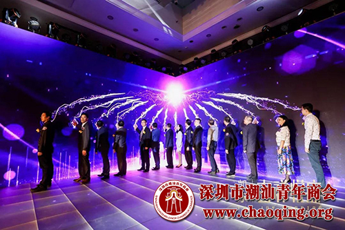 常务理事、深圳市凯东集团有限公司董事局副主席方凯东(左八),深圳市潮汕青年商会轮值会长、新凯集团有限公司董事长李敏(右七),深圳市凯东资本管理有限公司董事许丹(右一)等参加启动仪式。