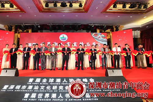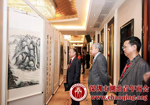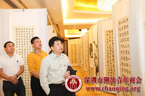 国务院侨务办公室原副主任张伟超,第八届潮商大会主席林永坚,第十届国际潮青联谊年会主席张俊勇,深圳市潮汕文化研究会主席(会长)黄惠生、永远荣誉会长陈永看,中国书法家协会会员、深圳市潮汕青年商会会监事长、深圳市潮汕文化研究会书画协会会长李永杰,美国、加拿大、新西兰、马来西亚、泰国、阿联酋、日本、菲律宾、柬埔寨、缅甸、巴西、英国、法国、挪威、比利时、瑞典、丹麦18个国家,港、澳、台、北京、上海、天津、重庆、广州、深圳等地区,来自两百多个潮属社团的会长、代表,以及来自全国各地的美术家协会、书法家协会主席、代表,书画爱好者、精英等近500人出席了开幕式。