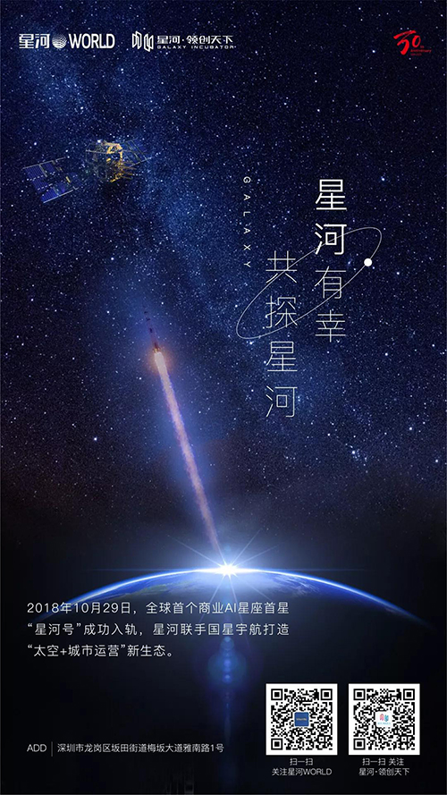 “星河号”是全球首个商业AI星座”星时代”首星。星河控股集团致力于“城市运营引领者”,首次运用卫星技术提升城市开发与运营水平。“星河号”将与“星时代”星座后续其他卫星协同工作,为星河控股集团提供多种应用服务,具体涵盖:对项目的选址、地块评估、基础设施规划设计提供支持;提升在建项目管理水平;为项目的商业布局提供决策依据;通过最终链接人与星空为广大业主提供更加安全、更加智能、更加科技的商住环境,共享“太空+城市运营”红利。
