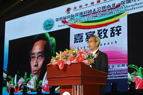 中国驻南非大使林松添在致词中表示,今年是中南建交20周年,在两国关系发展的新蓝图下,第四届国际深圳社团大会的召开意义重大,恰逢其时,将为促进中南两国经贸关系的进一步发展发挥重要的作用。深圳始终走在改革开放最前列,始终发挥引领作用,成为中国人引以为豪的一张靓丽名片。他希望深圳侨胞和广大企业家抓住非洲发展的资源优势和区位优势,在参与南非社会经济转型的大潮中,实现事业的更大发展。