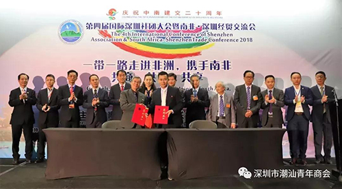 深圳市贸促委与南非-中国深圳总商会/联谊会签约,并由深圳市贸促委、深圳国际商会为南非-中国深圳总商会授“深圳市贸促委 深圳国际商会南非联络处”牌匾;《深圳侨报》与《中非新闻报》签署合作出版《深圳版》协议;南非-中国深圳总商会·联谊会与深圳市福田区企业家联合会签署合作协议;南非-中国深圳总商会/联谊会与深圳德商汇签署合作协议;深圳市潮汕青年商会名誉会长陈镇文单位深圳市银广厦集团与南非西北大学签署合作协议。