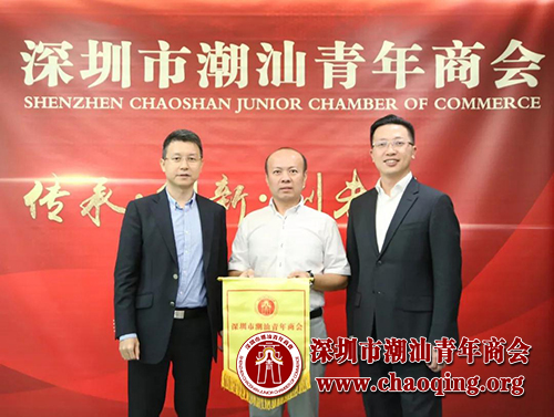10月份轮值会长李敏(右)、11月份轮值会长黄大卫(左)为11月份轮值副会长陈焕龙(中)授旗