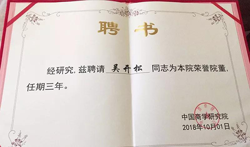中国商学研究院荣誉院董聘任书