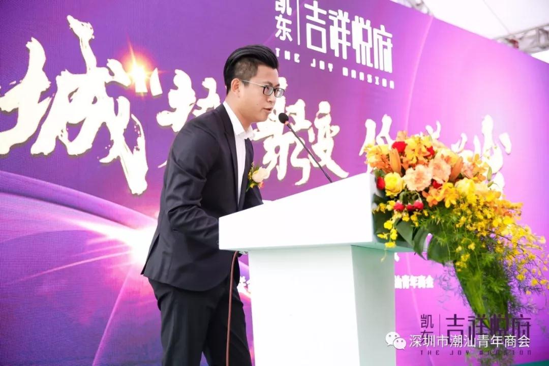 深圳市潮汕青年商会常务理事、深圳市凯东集团有限公司董事局副主席方凯东在活动上致辞。他说,凯东集团从1994年成立至今,投资领域主要覆盖房地产开发、金融、矿业、现代物流及供应链管理等方面,在深圳潜心打造嘉多利花园、嘉年华名苑、天龙商业城、东港中心大厦、塘朗雅苑、珑禧雅苑以及东莞市大岭山的凯东新城等多个项目。吉祥悦府是凯东集团在低碳城的第一个项目,也是回归龙岗的一个力作。
