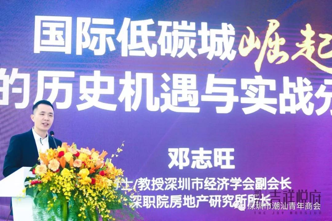 深职院房地产研究所所长、深圳市经济学会副会长邓志旺作探寻粤港澳大湾区下深圳的国际低碳城崛起的历史机遇与实战分析主题演讲。