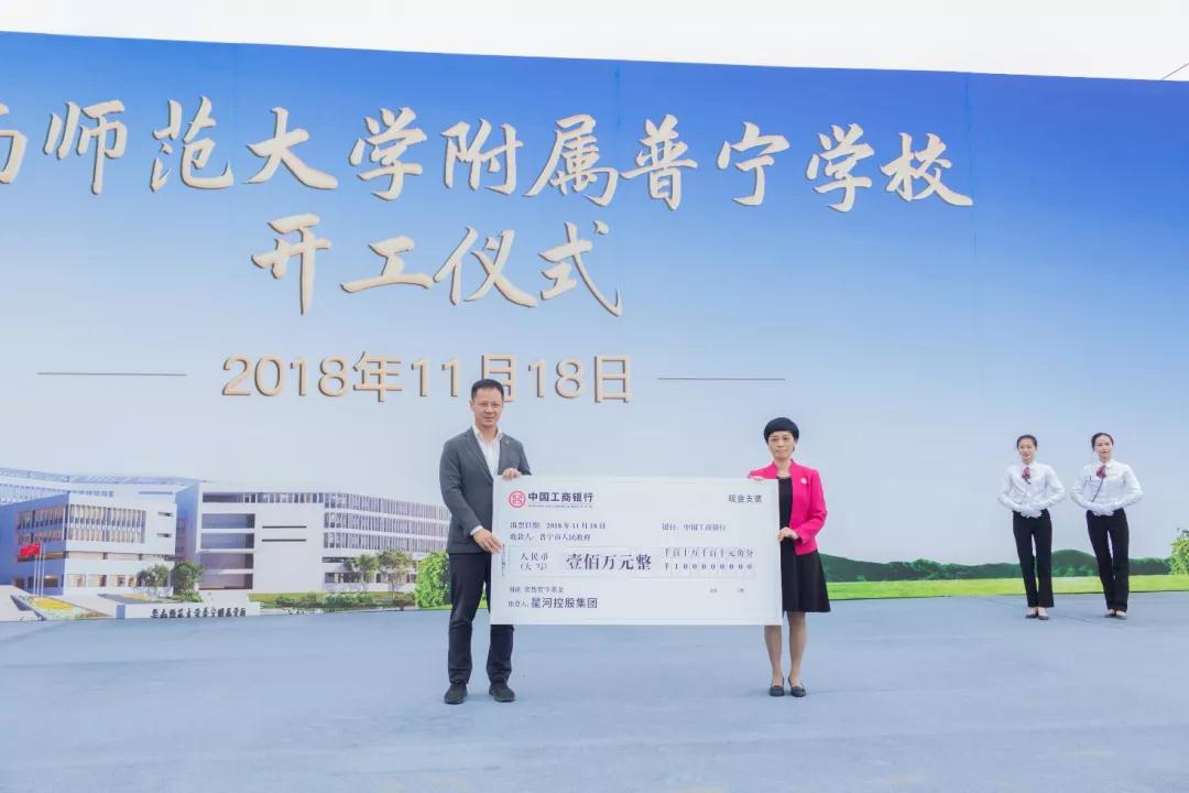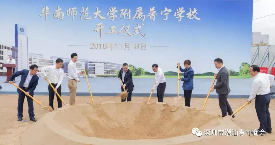 2018年11月18日上午,华南师范大学附属普宁学校开工仪式在星河明珠湾隆重举行。华南师范大学党委书记朱孔军,揭阳市委常委、普宁市委书记张时义,揭阳市委常委、常务副市长陈定雄,普宁市委副书记、市长林钢捷,星河控股集团副董事长、总裁姚惠琼,深圳市潮汕青年商会常务副会长、星河控股集团董事常务副总裁黄德安等出席仪式,普宁市有关单位、星河控股集团、华南师范大学有关领导代表,以及普宁地产等开工企业领导、职工代表,多家主流新闻媒体记者济济一堂,共襄盛举。
