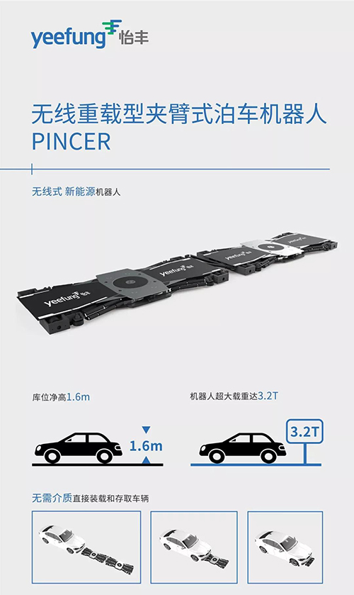 怡丰第三代停车机器人成员之一的无线重载型夹臂式泊车机器人PINCER