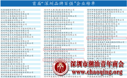 深圳市潮汕青年商会名誉会长单位深圳宝鹰建设集团股份有限公司、会长单位深圳海岸城投资有限公司、常务副会长单位深圳百泰投资控股集团有限公司均荣登榜单。