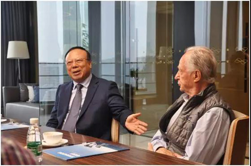 深圳海源集团佘桂锡董事长(左)、诺贝尔医学奖获得者马里奥·卡佩奇博士(右)