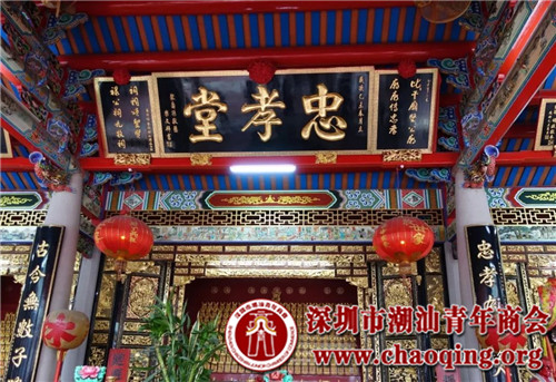 “忠孝堂”堂号由林乐文会长所题写,厚杉板雕刻,古板金油贴漆底,金光熠熠。宗祠神龛上祧祖神主的摆设,宗祠后堂神龛供奉太始祖比干公、始祖坚公、禄公、九牧公暨列祖列宗及普邑各村始祖神主,左厅为天后圣姑殿,右厅为族贤神主。