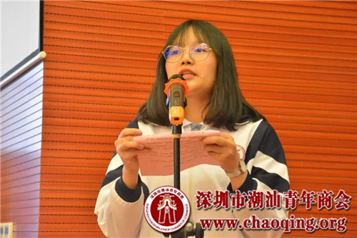 普宁市华侨中学高三(22)班郑惠莉作为学生代表发言,她表明了学生们向庄老精神学习的决心及传承庄老精神的信念,表示将好好学习,充实自己,为家乡和国家做出自己的贡献。