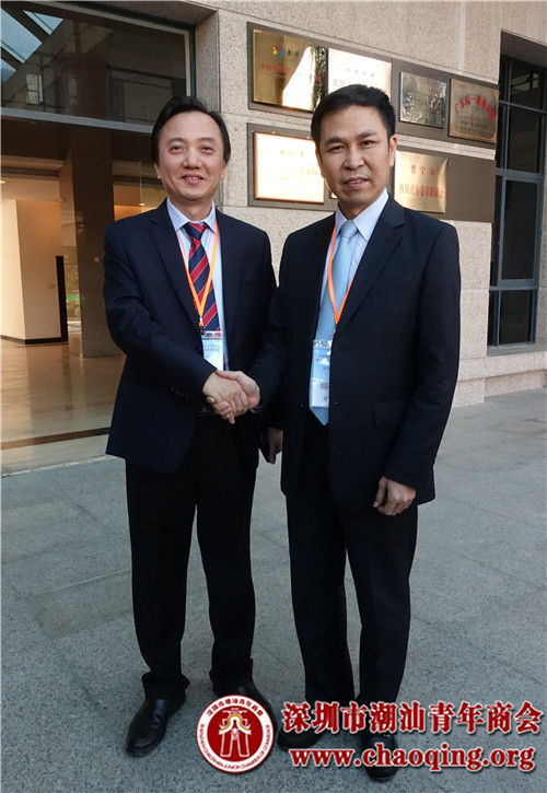交流团秘书长、本会秘书长黄坚泰与香港中联办九龙工作部部长郭亨斌(右)合影
