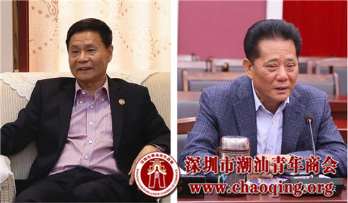 香港潮州商会会长胡剑江(左)与深圳市潮汕青年商会会长李奕标(右)合影