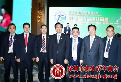 深圳市委原副书记、深商联合会、深商总会会长庄礼祥(中)与潮青代表合影