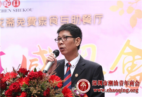 吴喜强大家长向大家介绍雨花斋2018年运营情况: 一年来,蛇口雨花斋为社会各界人士提供免费素食超过十余万人次。服务义工达近万多人次。雨花斋不光是一个免费吃饭的餐厅,更是一个弘扬中华美德的文化课堂,这一年来蛇口雨花斋得到了大家的高度赞誉,让更多空巢老人、残障人士、弱势群体感受到了家的温暖和关爱,吃素让我们既传递了爱心、联谊了美德,又环保了地球,更加健康了身体。