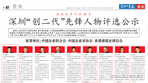 据了解,此次评选是为致敬深圳改革开放40年,由各行业协会和商会推荐、企业自荐,经专家评审后产生,共评选出40名深圳“创二代”先锋人物。