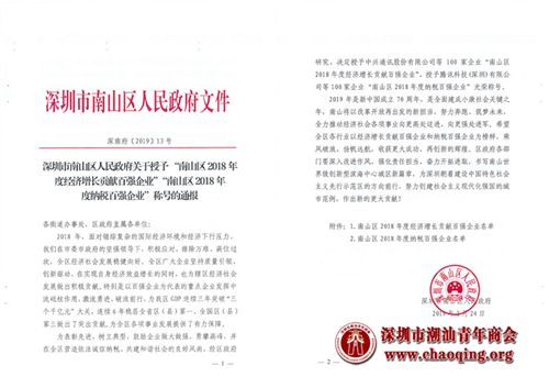翰宇药业荣获“南山区2018年度经济增长贡献百强企业”称号