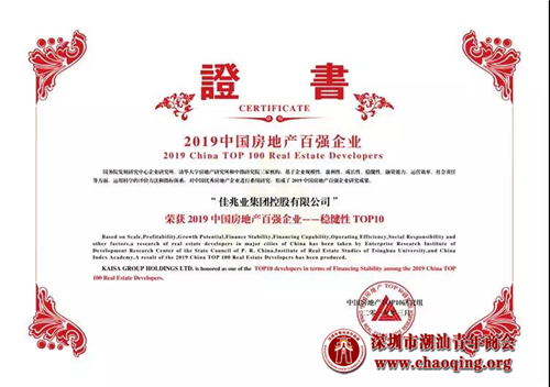 新开局、新征程,此次佳兆业获评“2019中国房地产百强企业29强”、 “2019中国房地产百强企业——稳健性TOP10”,是对佳兆业发展战略的肯定,也是对公司未来发展潜力的满满信心。未来,佳兆业将以地产为核心基石产业,整合产业资源,打造多业态有机生长的城市服务产业集群,向城市公共服务商之路大步迈进。