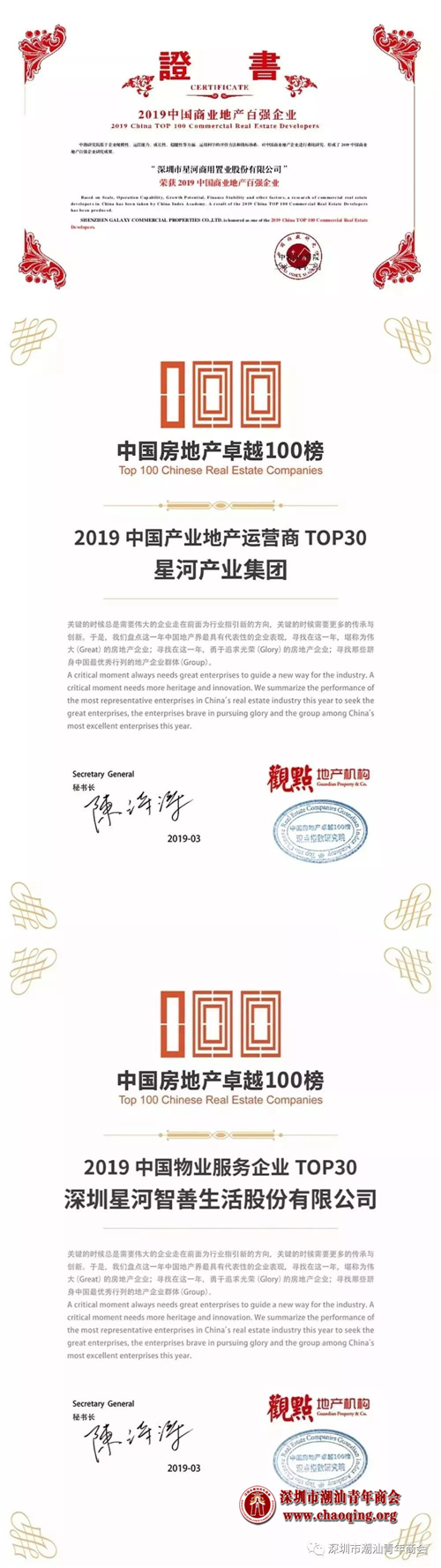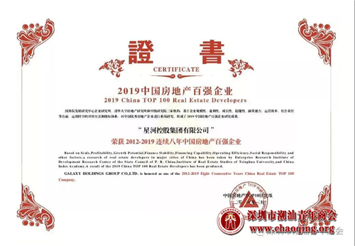 “2019中国房地产开发企业100强”。