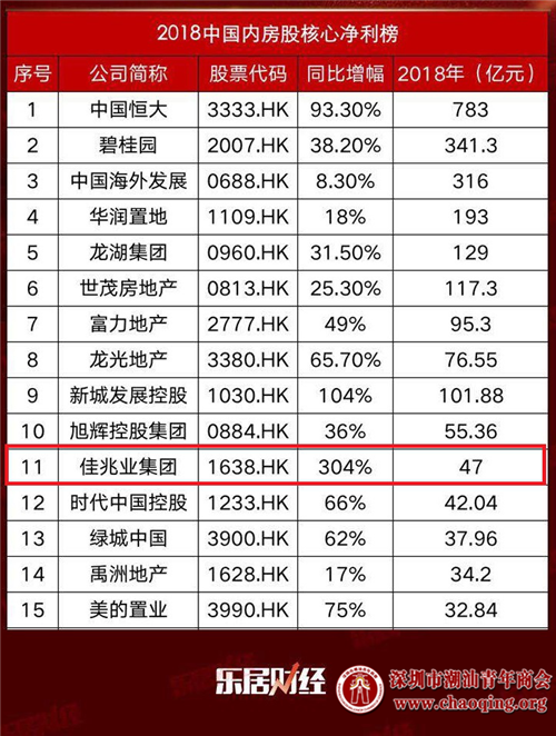 2018中国内房股核心净利榜出炉 佳兆业集团位列增幅榜第二