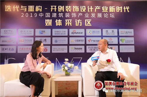 ▲中装建设(002822)总裁、我会副会长庄展诺接受现场媒体采访