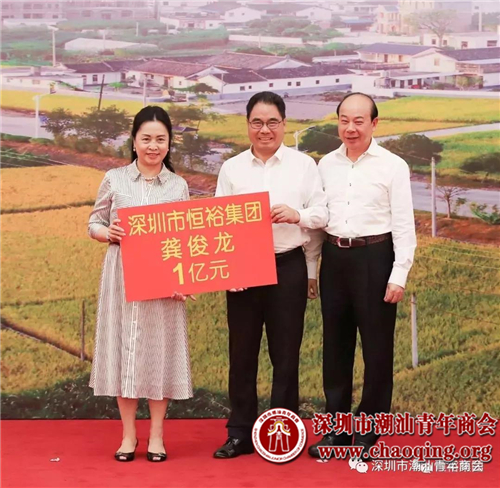 2019广东扶贫济困日活动,恒裕集团董事局主席龚俊龙再次向广东省慈善总会捐赠1亿元人民币,用于帮扶省内贫困村、支持贫困人口脱贫奔康。