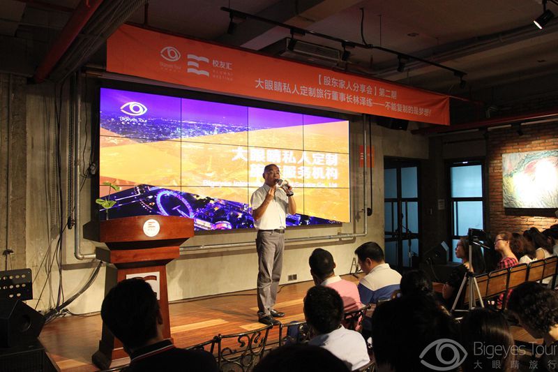 这一期旅行分享会由深圳大眼睛私人定制旅行服务机构董事长林泽练先生担任主讲。会上,林泽练先生分享了个人成长经历、人生感悟,讲述创业经历及发展规划。