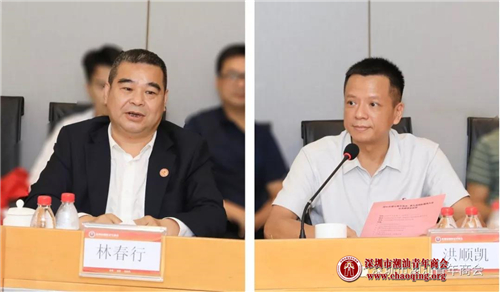 第九届国际潮商大会执行会长林春行(左)、洪顺凯(右)发言