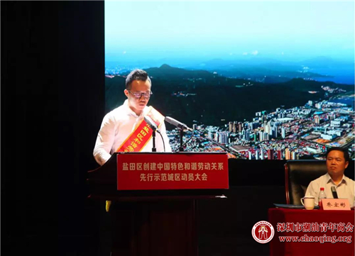 8月20日下午,“创建中国特色和谐劳动关系先行示范城区动员大会暨专题培训会”在盐田会堂隆重举行。广东省人力资源和社会保障厅副巡视员林景青,深圳市人力资源和社会保障局局长孙福金,盐田区委书记陈清,盐田区委副书记、区长杨军等领导与企业代表近200人参加会议。