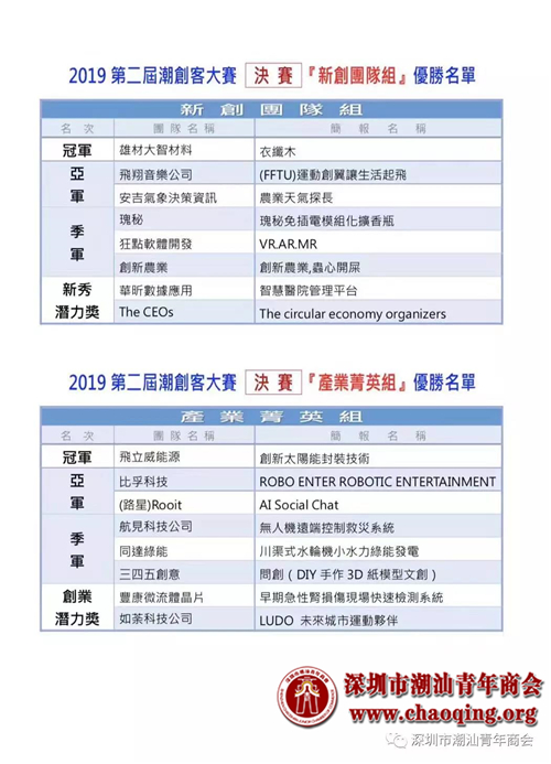 2019年8月23日,由本会林澍副会长单位创博汇双创服务有限公司/创博汇(深圳)服务有限公司主办的第二届“潮创客大赛”在台北举行。共有16组创业团队在900多组海选队伍中获胜。