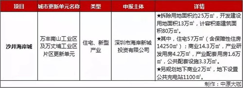 项目位于深圳市宝安区沙井中心地区,南依沙井南环路,北靠公园南路,东临新丰苑小区,西至万安路。根据规划,该项目拟拆除范围用地面积260960㎡,拟建筑面积超80万㎡,将建设为集住宅、商业、产业研发等多种业态为一体的产业综合体。