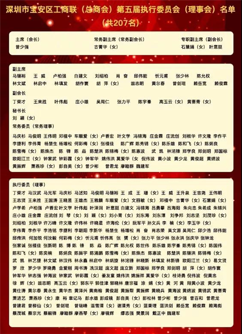 热烈祝贺名誉会长曾少强当选宝安区工商联(总商会) 第五届执行委员会(理事会)主席(会长)