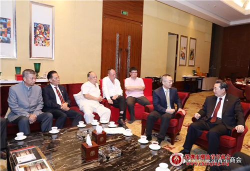 全国工商联原党组副书记、原专职副主席、潮商东盟投资基金筹备组组长黄小祥,拟任潮商东盟投资基金管理有限公司董事长兼总裁陈萍,百果园董事长余惠勇,深圳市潮汕商会创会会长、我会永远荣誉会长吴开松、深圳市潮汕商会会长、我会荣誉会长郑汉明,我会荣誉会长黄楚龙、名誉会长郑桂泉、副会长吴玉丹、黄德林等参加座谈。