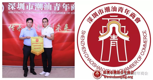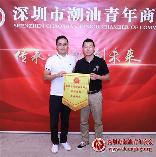 9月份轮值会长卓睿为9月份轮值副会长陈基渠(左)、9月轮值常务理事陈冬进(右)授旗