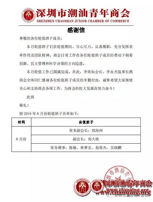 2019年9月份轮值班子轮值会长:卓睿 ;