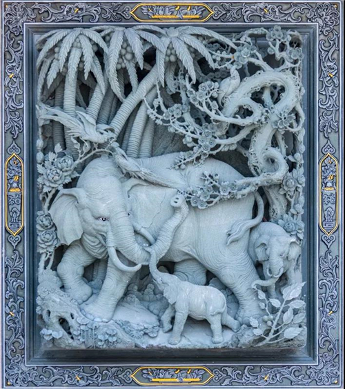 石刻称奇镂壮观,木雕呈秀细非凡。