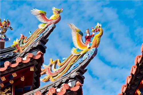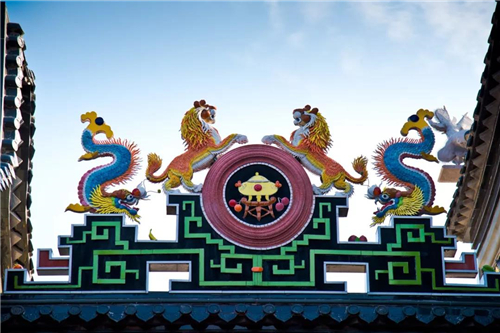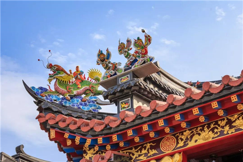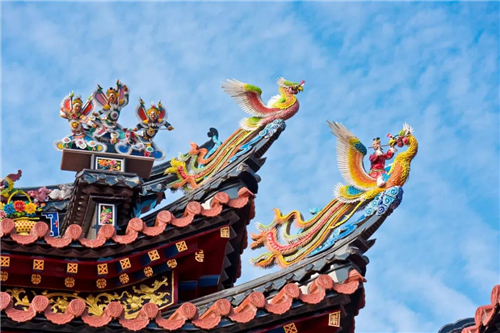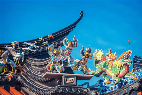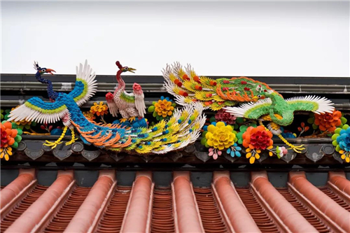 从外观上看,绵福里最引人注目之处应该是如鱼鳞鸟翼,飘逸生动屋顶屋脊。艺人们发挥了天才的想象,在屋脊屋顶上塑置的各种神仙瑞兽和戏曲人物嵌瓷,形成一个凤舞龙翔、人神杂陈的虬龙腾壤,朱鸟舒翼,神仙岳岳,杂物奇怪,山神海灵的“鸟革晕飞”的世界。