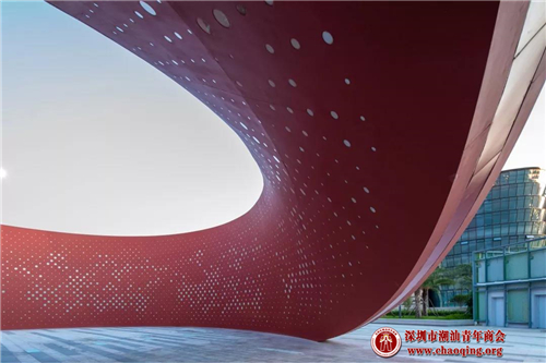 而作为“鲤鱼”的鱼嘴部位,也是“四个花瓣”的花蕊和整个广场最核心的“中国红”螺旋景观造型建筑便是出自于奇信股份之手,“中国红”螺旋景观造型建筑学名小剧场双曲面GRC幕墙,这一抹“中国红”无论是在白天还是夜晚,都是泉州市公共文化中心“最靓红芯”。