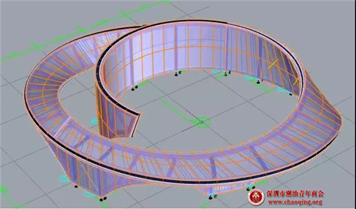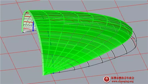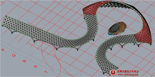 ▲ 双曲造型玻璃雨棚系统3D犀牛模型