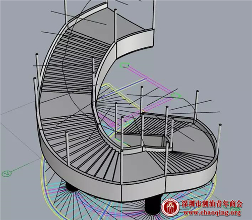 本项目螺旋楼梯铝板及玻璃护栏系统的侧面真石漆铝板及玻璃,均为异形、双曲面、多角度,每一块铝板与玻璃尺寸、弧度均不一致,需精确排版、深化。