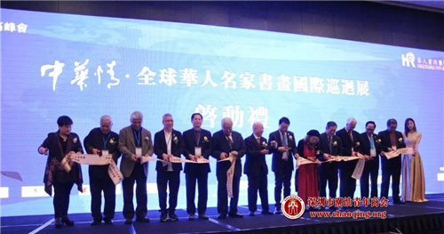 《中华情·全球华人名家书画国际巡回展》启动礼上,嘉宾与艺术家一同剪彩