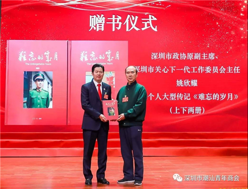 会上举行了深圳大学国际潮商研究中心揭牌仪式。深圳市政协原副主席、深圳市关心下一代工作委员会主任姚欣耀为潮青赠送个人画册《难忘的年月》。