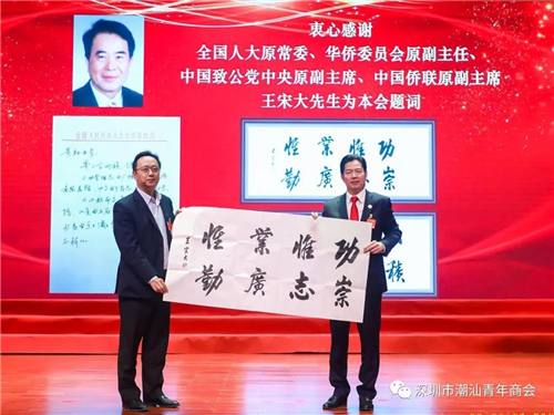全国人大常委会原常委、华侨委员会原副主任、中国致公党中央原副主席、中国侨联原副主席王宋大向大会赠送了墨宝。