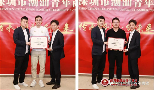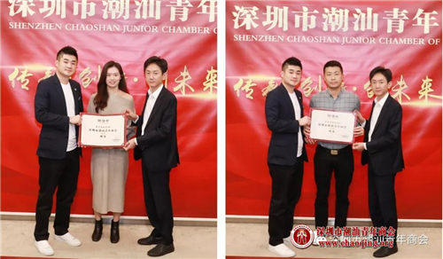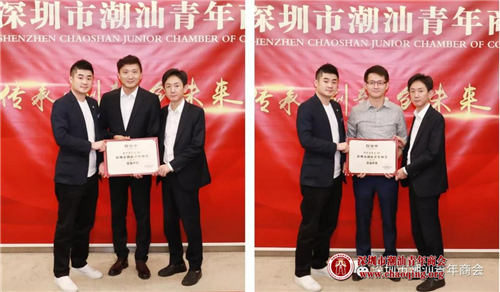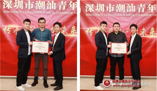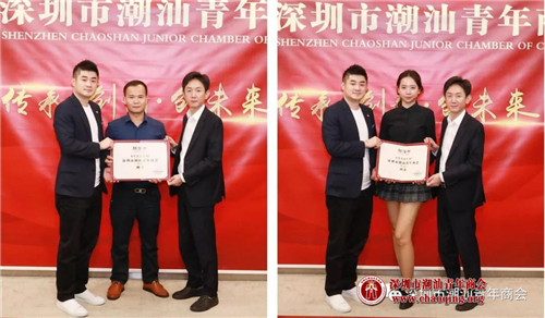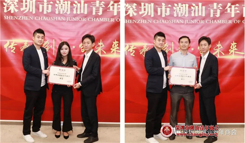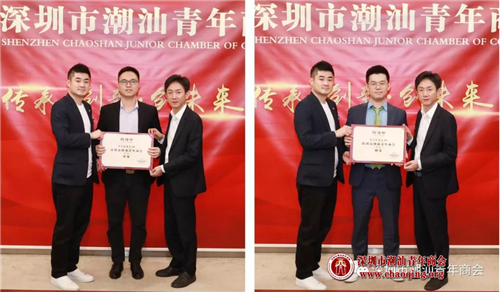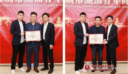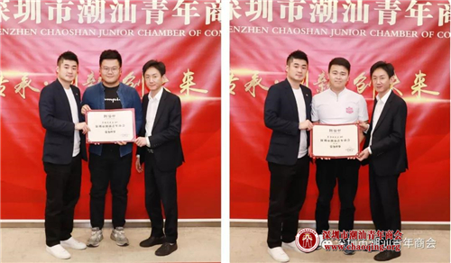 1-2月份轮值会长吴怡德、常务副会长叶洪孝为常务理事方一方(左)、陈晓鹏(右)颁发聘任证书