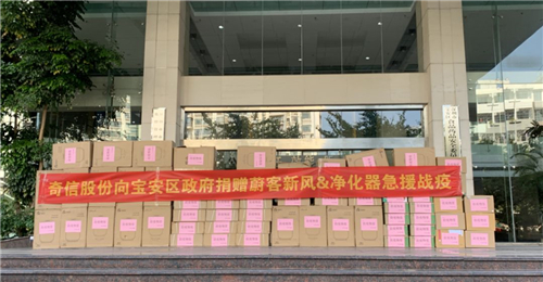 疫情当前,奇信股份积极承担社会责任,与宝安区政府齐心协力,共抗疫情,向深圳市市场监管局宝安分局捐赠了20台蔚客空气净化器、20台蔚客新风净化器、20000个口罩等价值70余万元的防疫物品。本会常务副会长、奇信股份董事长叶洪孝在接受采访时表示:奇信股份作为政府重点扶持企业,在疫情当下勇于承担社会责任,尽绵薄之力助力宝安疫情防控。宝安区副区长梁敏华代表宝安区疫情防控指挥部接收了这批防疫物资。她表示,社会企业众志成城,共抗疫情,爱心企业所捐赠的防疫物资犹如雪中送炭,宝安区会将物资及时分发给一线疫情防控人员。