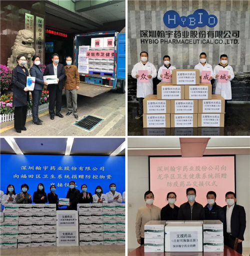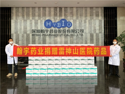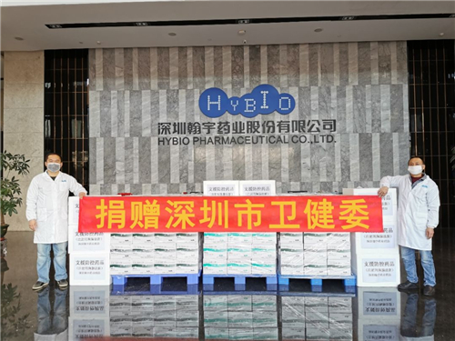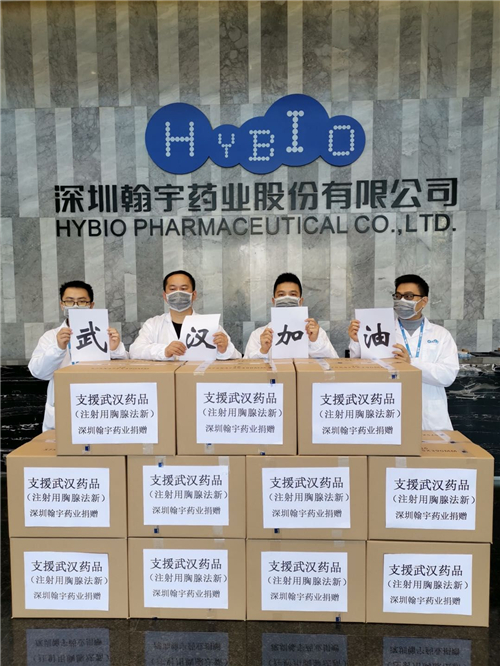 2月2日,翰宇药业向深圳市卫健委捐赠了一批公司生产的疫情防控药品“注射用胸腺五肽”和“注射用胸腺法新”,用于为深圳一线抗疫医护人员提供安全帮助。