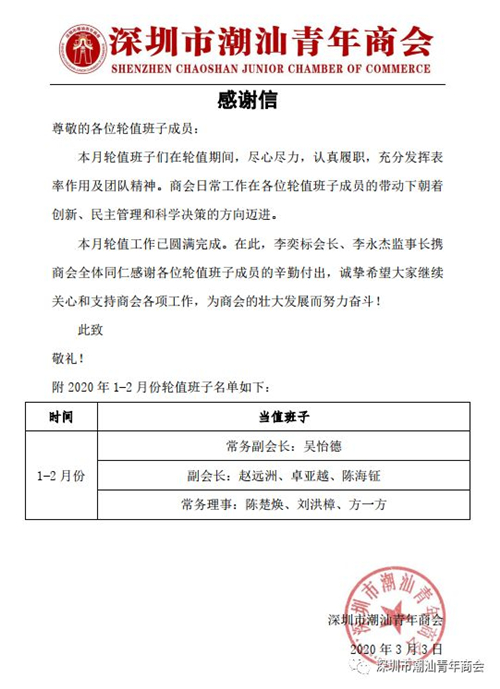 许静任轮值会长,2020年3月份轮值班子简介