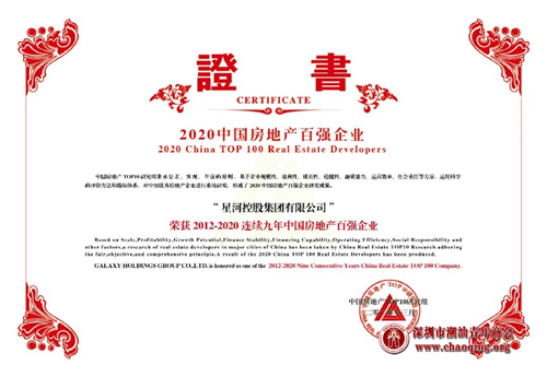 星河控股集团连续9年荣膺中国地产百强!